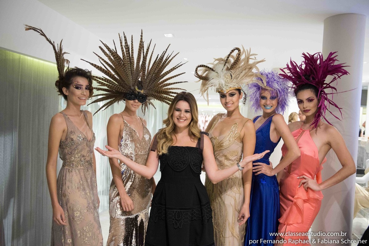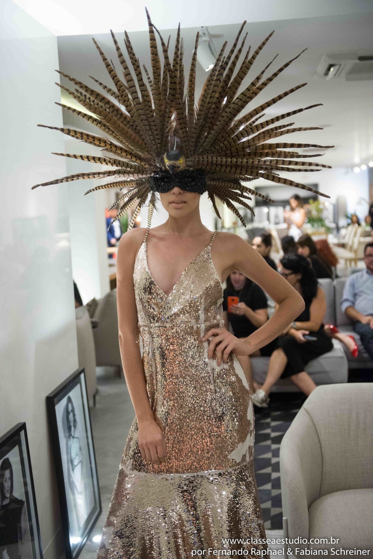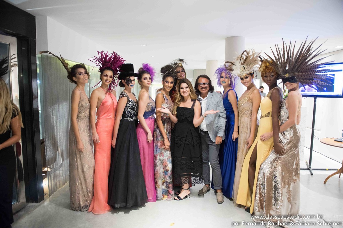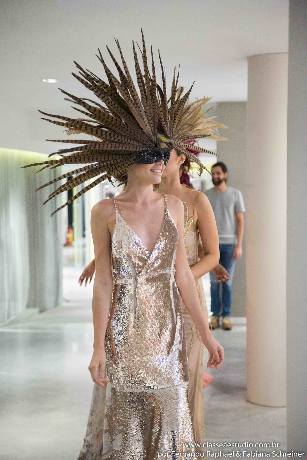 Apresentação da coleção de vestidos de luxo com desfile da loja A Maison by Mary Mansur e máscaras de carnaval by Augusto Werner.