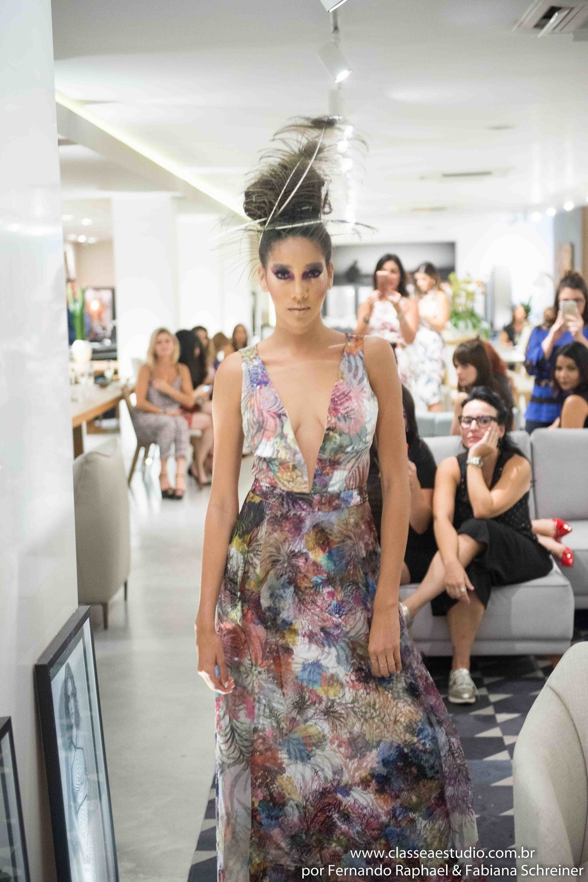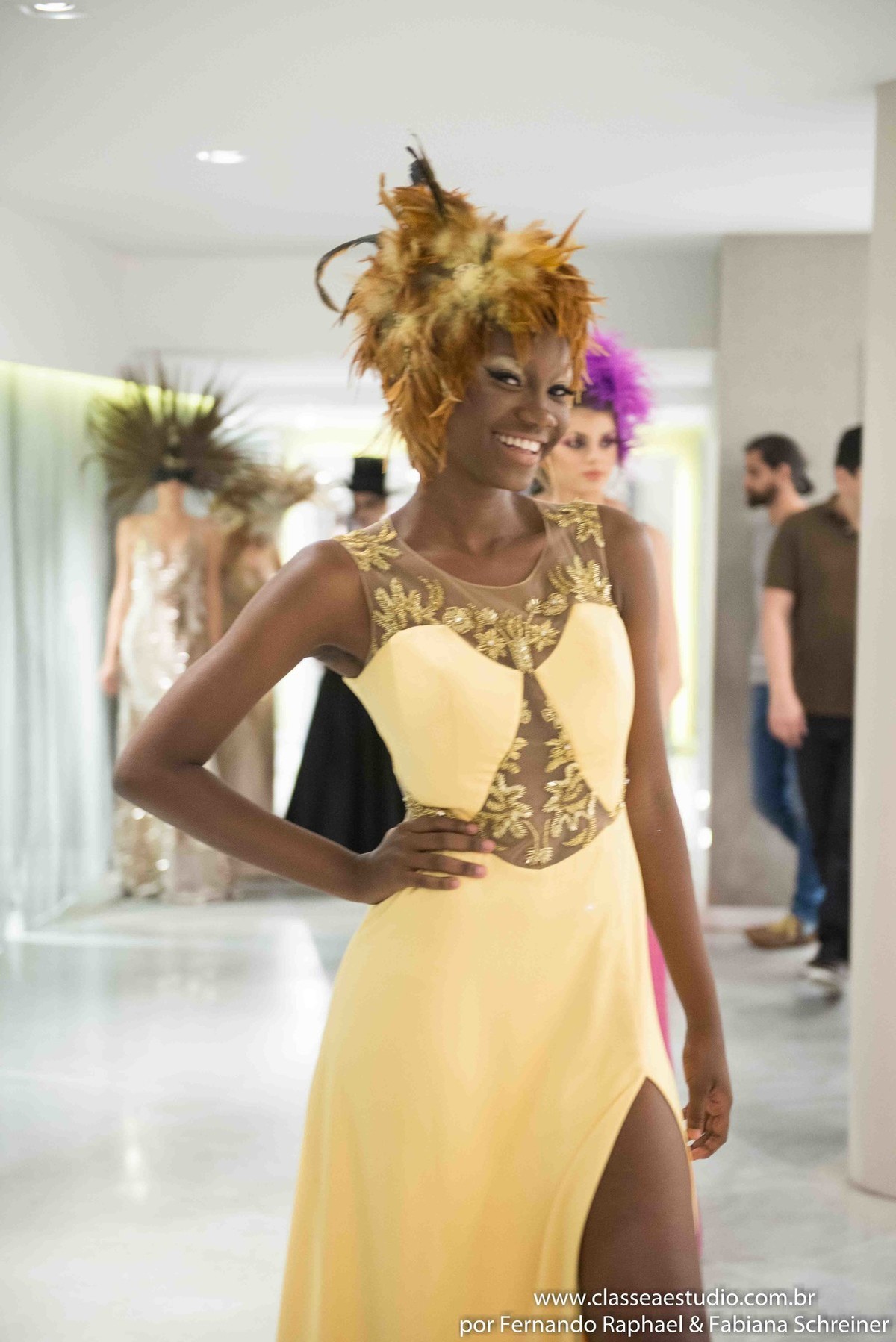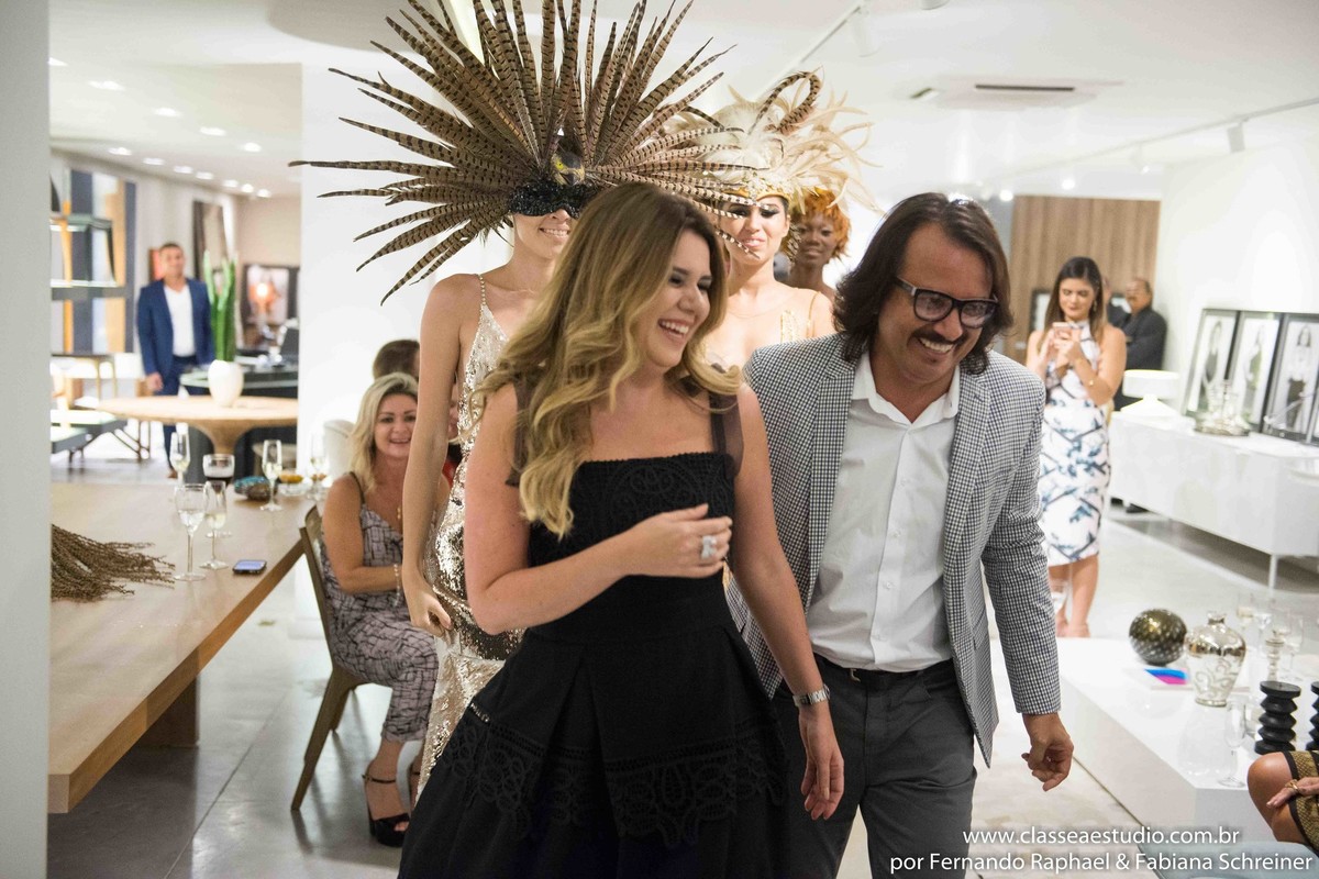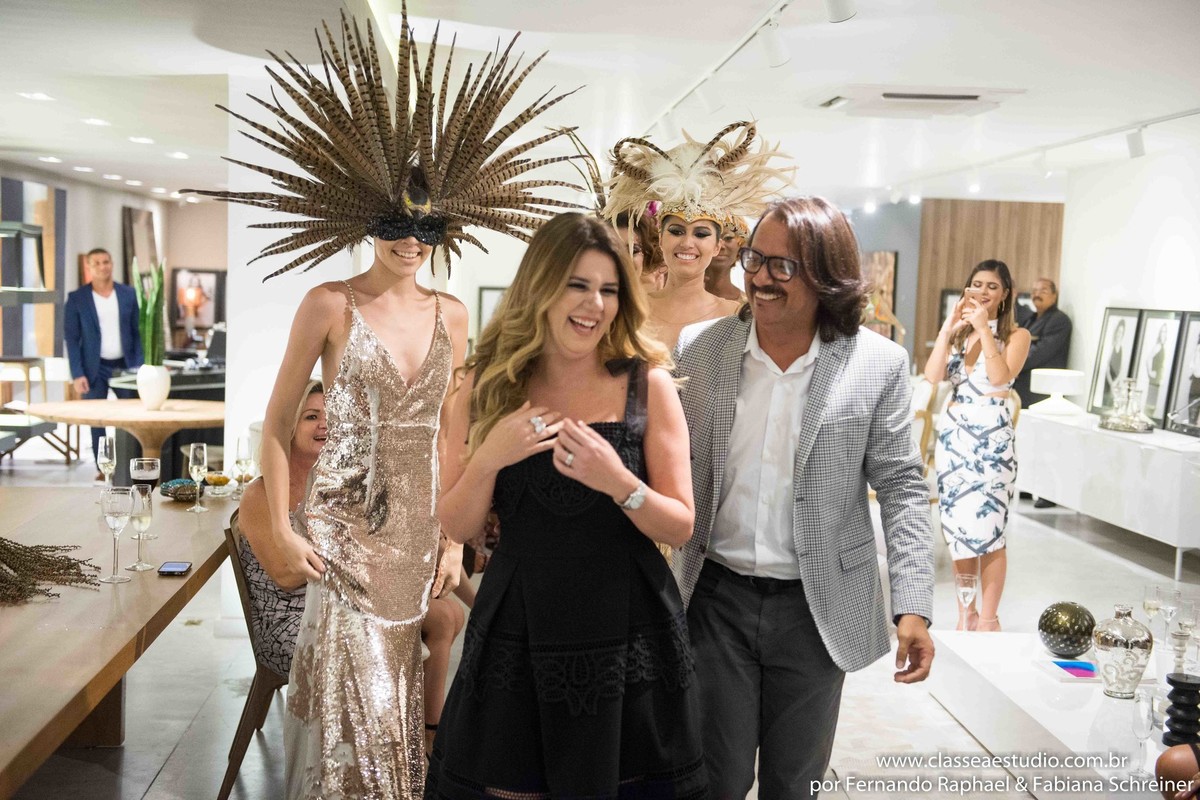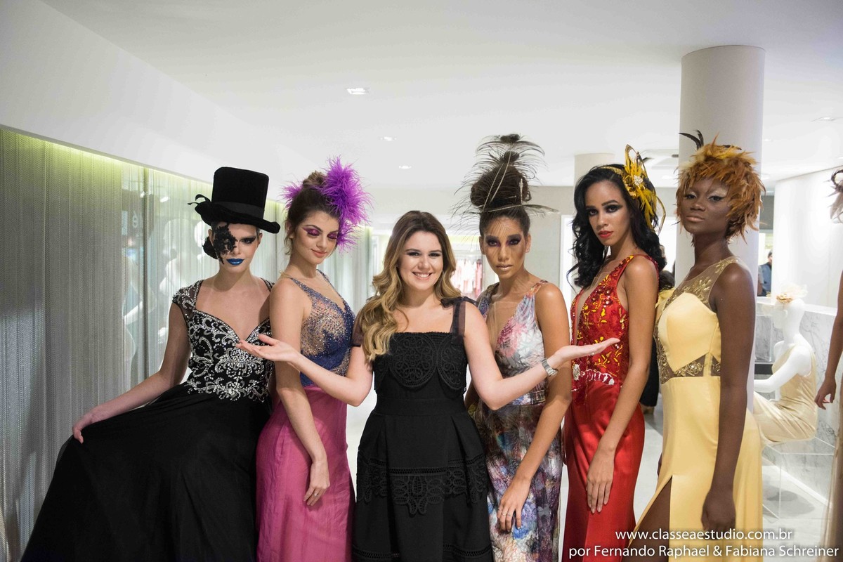 Apresentação da coleção de vestidos de luxo com desfile da loja A Maison by Mary Mansur e máscaras de carnaval by Augusto Werner.